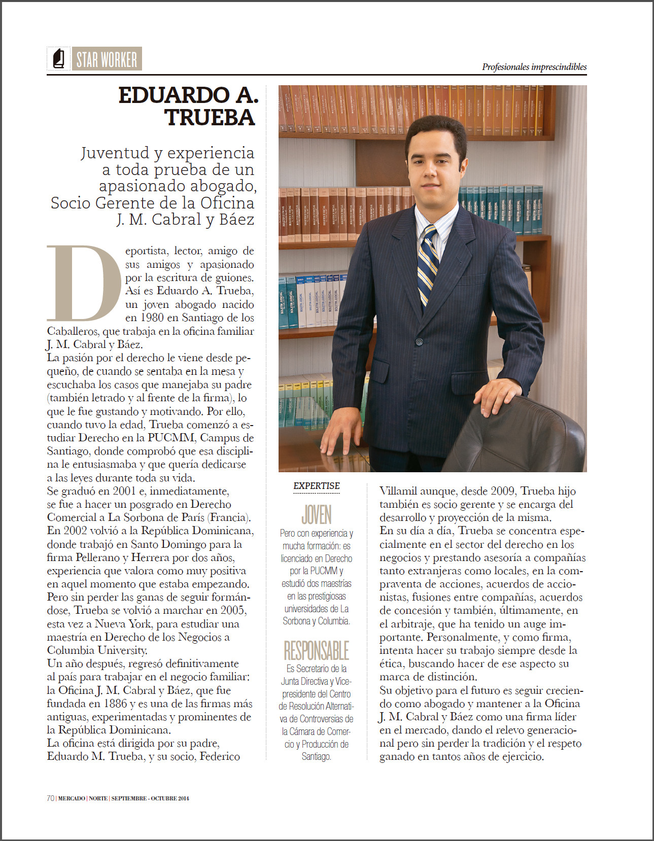 Juventud y experiencia a toda prueba de un apasionado abogado, Socio Gerente de la Oficina J. M. Cabral y Báez Tweet Click para ampliar FaLang translation system by Faboba